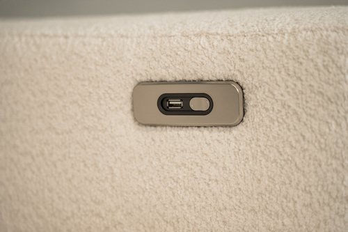 Frame cover with studs and roll cushions in Tweed Bianco Latte color, seat and backrest with caption in fabric Bianco color.